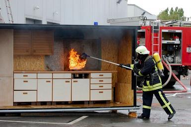 Keywords: fire feuerloeschuebung kitchen fire flame fire fighter water
