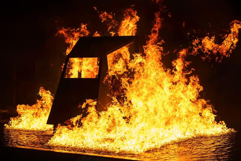 Keywords: fire flames night burning hot danger firefighters training live controlled protection job practice firemen