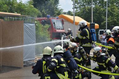 Keywords: fire respiratory protection feuerloeschuebung firefighters delete breathing apparatus use fire fighter delete exercise brand fire fighting fire extinguishing wear protective clothing hose rescue exercise helm equipment person gas mask fire delete water water pressure fog help emergency flame risk