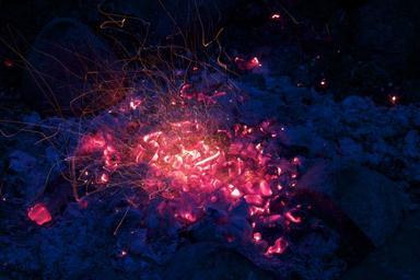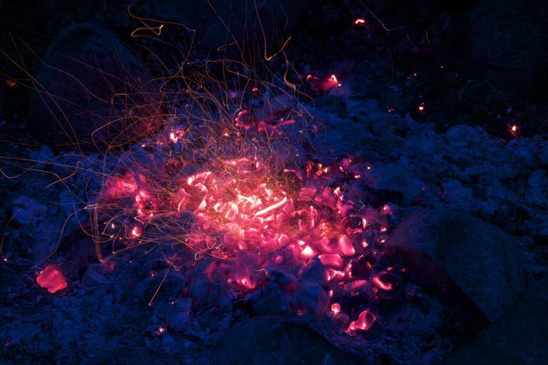 Keywords: fire sparks traces flame hot heat burn red warm campfire glowing night blaze