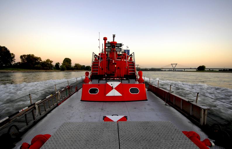 Keywords: fireboat düsseldorf rhine barge flb2 fire shipping ship rhine cruises airport bridge use red blue light