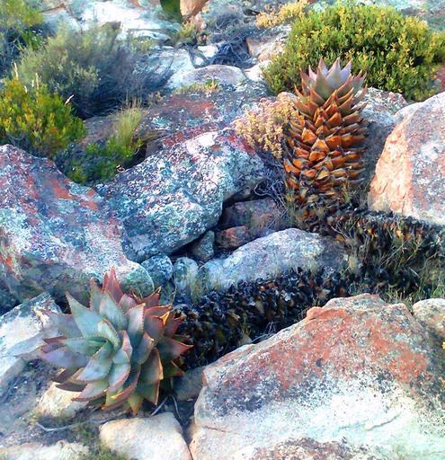 Keywords: Firedamaged Aloe perfoliata - Hex River Mountains - SA1.jpg en Aloe perfoliata in Hex River Mountains showing fire damage 2012-11-08 18 51 50 own Abu Shawka cc-zero Uploaded with UploadWizard Aloe perfoliata Hex River Pass