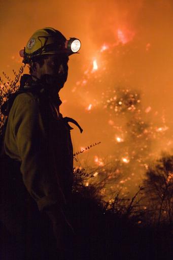 Keywords: firefighter forest fire silhouette hot heat dangerous burn flames smoke water equipment helmet rescue orange fireman