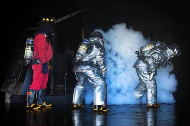 Keywords: firefighters training live fire controlled smoke night protection danger equipment hose helmet spray nozzle job practice firemen safety service