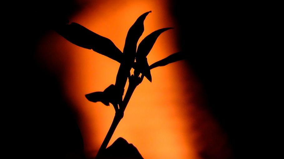 Keywords: firelight fire bill branches autumn light leaf back light shadow lichtspiel night