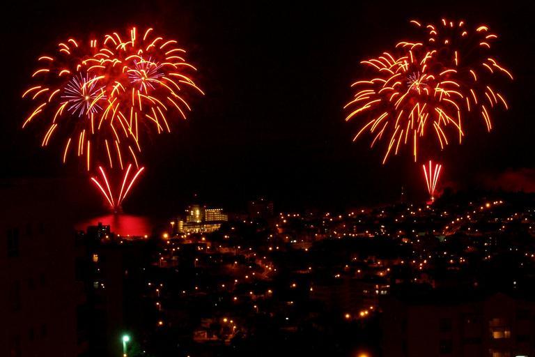 Keywords: fireworks firecrackers lights lighting bursting ignites celebrations festival new year bright glowing golden yellow sparkling sparkles cities city fun party festive display