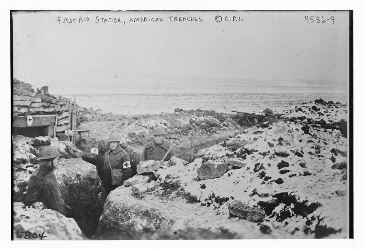 MAKE A MEME View Large Image First Aid Station, American Trenches (LOC) (26146607126).jpg Bain News Service publisher First Aid Station American Trenches between ca 1915 and ca 1920 1 negative glass ; 5 x 7 in or smaller Notes Title from data provided by the Bain News ...