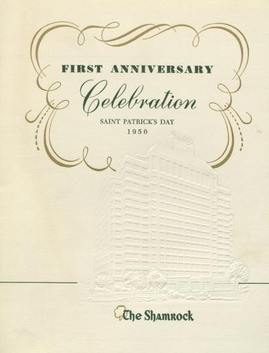 Keywords: First Anniversary Saint Patrick's Day celebration.jpg en Shamrock Hotel Houston Texas First Anniversary Saint Patrick's Day Celebration Program Cover 1950 The University of Houston Digital Library http //digital lib uh edu The University of Houston Digital Library Custom license marker 2012 04 29 This image is in the public domain and may be used freely If publishing in print electronically or on a website please use the citation Courtesy of Special Collections University of Houston Libraries To order a higher resolution reproduction see http //info lib uh edu/about/campus-libraries-collections/special-collections-archives/request-digital University of Houston Libraries Uploaded with UploadWizard 1950 documents Saint Patrick's Day in the United States Hotels in Houston Food menus 1950 in Houston 1950 in art |