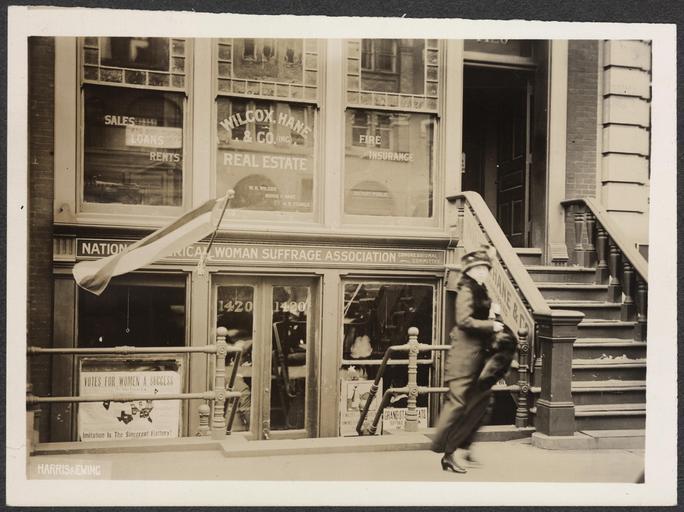 | Keywords: First C U H 159046v.jpg  Summary Photograph of woman walking by National American Woman Suffrage Association building First Congressional Union Headquarters Harris Ewing Washington D C Photographer 1913 Title transcribed from item 1 photograph print 5 x 7 in accession number Call Number Location National Woman's Party Records Group I Container I 159 Folder Headquarters 1420 F Street Source Collection Records of the National Woman's Party institution Library of Congress Manuscript Division http //hdl loc gov/loc mss/mnwp 159046 PD-1923 PD-Harris-Ewing suffragettes |