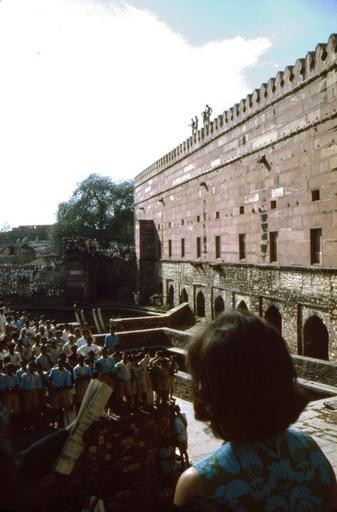 Keywords: First Lady Jacqueline Kennedy Tours Fatehpur Sikri in India (6).jpg en First Lady Jacqueline Kennedy right foreground back to camera watches divers jump into a pool of water from the top of Victory Gate at the 16th-century Mughal city of Fatehpur Sikri in Uttar Pradesh India 1962-03-15 http //www jfklibrary org/Asset-Viewer/Archives/JFKWHP-1962-03-15-H aspx Cecil Stoughton other versions PD-USGov Jacqueline Kennedy Onassis in India Fatehpur Sikri in the 1960s Uploaded with UploadWizard Buland Darwaza