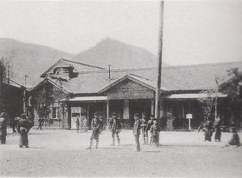 | Keywords: First Moji station building 1891.jpg en First Moji station building The station building was replaced by current building in 1914 and the station name was renamed to Mojiko station in 1942 ja 代 司駅舎 駅は1914年に現存するものに立て替えられ さらに1942年に 司港駅に改称された scanned from p 53 of Tetsurin-no-todoroki Author ca 1891 The photograph was taken around 1891 therefore under old copyright law of Japan the copyright of the photo had already expired Mojiko Station Stations in Fukuoka prefecture photographed before 1956 PD-Japan-oldphoto |