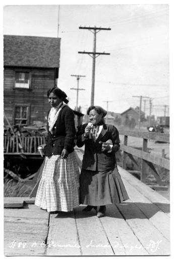 | Keywords: blackandwhite monochrome black and white First Nations women eating ice cream cones at Imperial Cannery VPL Accession Number: 2111 Date: 1913 Photographer/Studio: Todd, F. Dundas Content: Note of original photograph. H88 B.C. Canneries. Indian Delight. FDT. Topic: Canneries Cannery workers Indians of North America Indigenous women Organization: Imperial Cannery Company Location: British Columbia - Richmond - Steveston British Columbia - Steveston More information on our historical photograph collection: www.vpl.ca/historicalphotos First Nations women eating ice cream cones at Imperial Cannery VPL Accession Number: 2111 Date: 1913 Photographer/Studio: Todd, F. Dundas Content: Note of original photograph. H88 B.C. Canneries. Indian Delight. FDT. Topic: Canneries Cannery workers Indians of North America Indigenous women Organization: Imperial Cannery Company Location: British Columbia - Richmond - Steveston British Columbia - Steveston More information on our historical photograph collection: www.vpl.ca/historicalphotos |