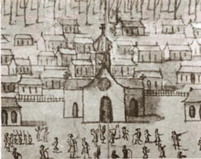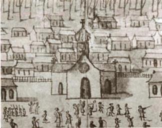 Keywords: First Parish Church of St Louis New Orleans 1726.jpg New Orleans 1726 Sketch showing first parish Church of St Louis located where the St Louis Cathedral would later be built Detail of Veüe et Perspective de la Nouvelle Orleans View Perspective of New Orleans 1726 Ink and watercolor by Jean-Pierre Lassus Ink watercolor view by Jean-Pierre Lassus from the collection of the Centre des archives d'outre-mer France DFC Louisiane 71-6A via http //www storyvilledistrictnola com/stlouis_cathedral html 1726 Jean-Pierre Lassus PD-old-100 Saint Louis Parish Church New Orleans Veüe et Perspective de la Nouvelle Orleans 1726 Jackson Square New Orleans |