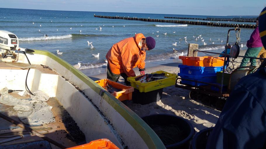 Keywords: fischer beach fish fang idyll sea gulls