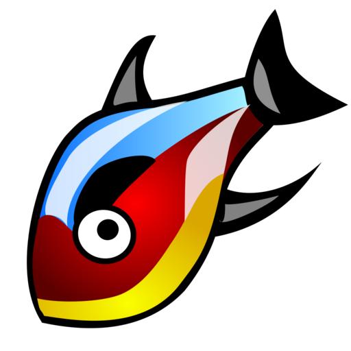 Keywords: fish aquatic colorful marine life red blue yellow stripes cartoon