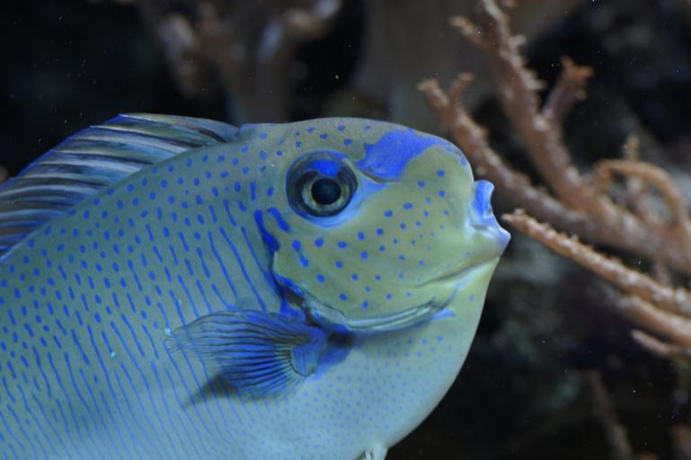 Keywords: fish close portrait aquarium underwater meeresbewohner swim water water creature underwater world animal exot exotic colorful coral reef head pattern drawing blue