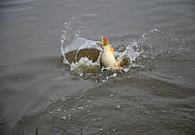 Keywords: fish water south bohemia ledenice carp nature surface jump water drops defense defending