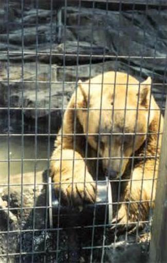 Keywords: Fisher the Bear.jpg Fisher the Bear tests a bear canister for the Sierra Interagency Black Bear Group Taken from http //www sierrawildbear gov/foodstorage/canisterzootest htm PD-USGov Ursus maritimus Bear-resistant equipment