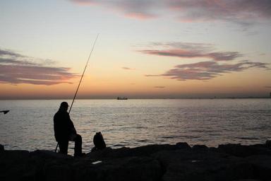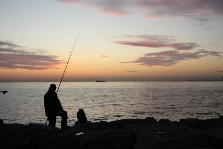 Keywords: fisherman fisher sunset evening sea turkey istanbul fishing