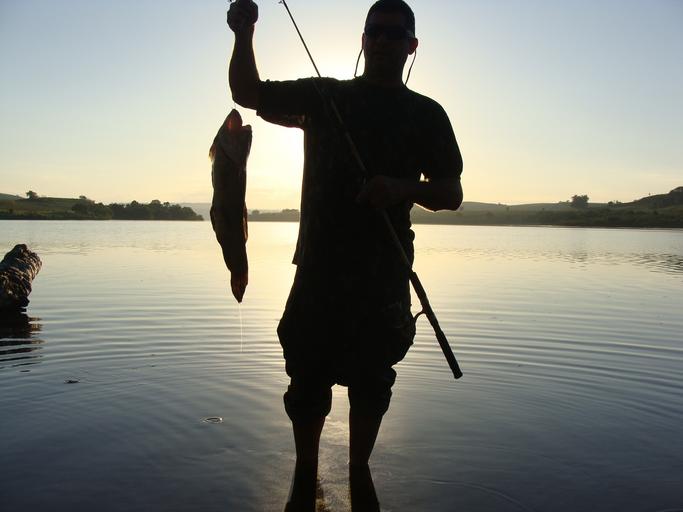 Keywords: fisherman silhouette fish