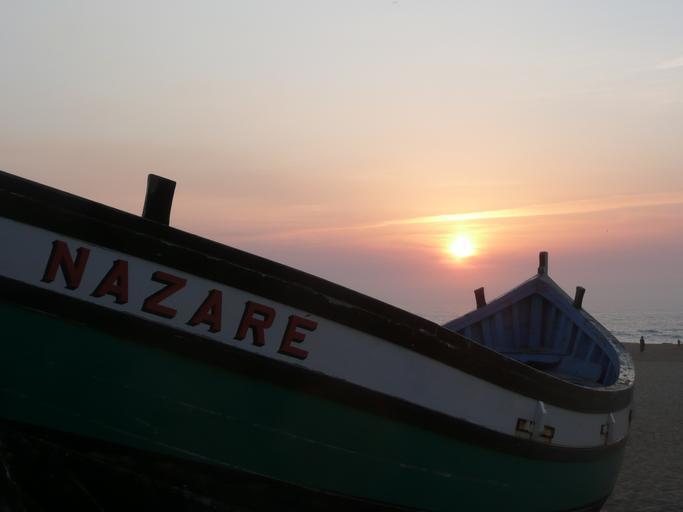 Keywords: fishing boat beach sea boot sunset evening portugal dusk sunbeam
