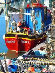 Keywords: fishing boat sea quay quayside mooring red boat colorful