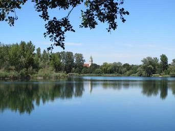 Keywords: fishing pond ketsch lake water fishing glassy reflection church building