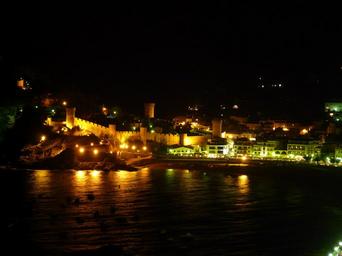 Keywords: fishing village resort night photograph romantic sea holiday tossa de mar spain castle tower tourism
