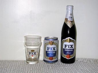Keywords: Fix Hellas.jpg de Fix Hellas Bier Flasche Dose und Glas von 2008 en Fix Hellas beer Bottle can and glass in 2008 el ύρα Fix Hellas Φιάλη κουτί και οτήρι to 2008 own Kriton 2008-07-23 Beers of Greece Beer bottles brown glass Beer cans Beer glasses
