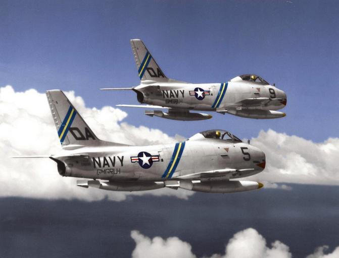 | Keywords: FJ-3D drone control aircraft in flight 1957.jpg Two U S Navy North American FJ-3D Fury aircraft of Guided Missile Group 1 GMGRU-1 are in flight near Oahu Hawaii USA GMGRU-1 used the FJ-3D control aircraft for the SSM-N-8 Regulus cruise missiles http //collections naval aviation museum/emuwebdoncoms/pages/doncoms/AdvQuery php U S Navy National Museum of Naval Aviation photo No http //collections naval aviation museum/emuwebdoncoms/pages/doncoms/Display php irn 19768 QueryPage 2Femuwebdoncoms 2Fpages 2Fdoncoms 2FAdvQuery php 1996 253 7236 006 1957-05-13 U S Navy PD-USGov-Military-Navy North American FJ-3 Fury Drone control aircraft |