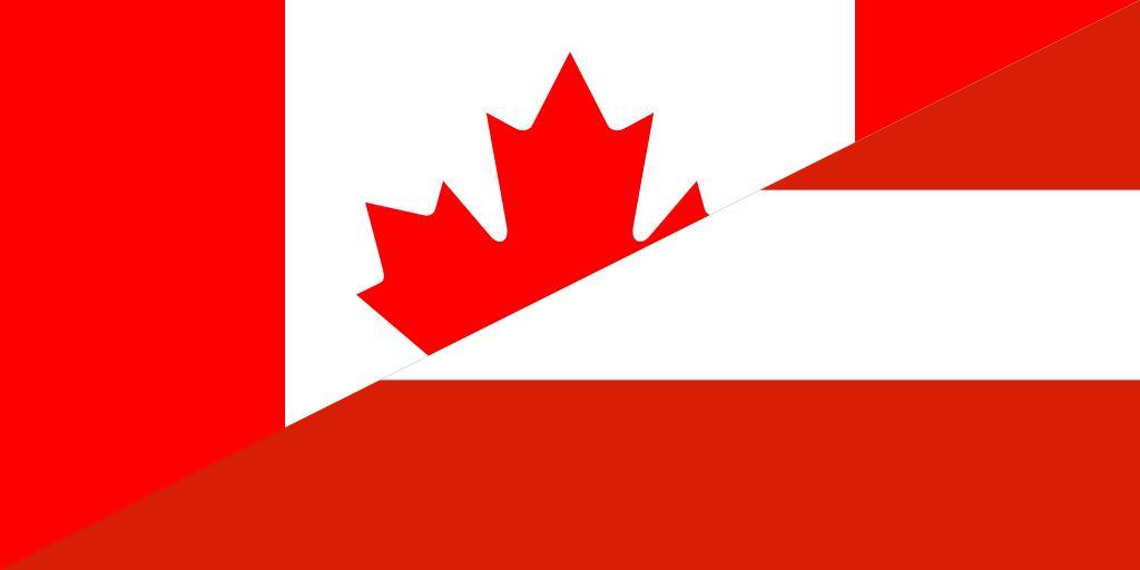Keywords: Flag of Canada and Austria.svg ValidSVG Hybrid of File Flag of Canada svg and File Flag of Austria svg Flag_of_Austria svg Flag_of_Canada svg Flag_of_Canada_and_Germany svg 2009-07-02 15 31 UTC Flag_of_Austria svg see File Flag of Austria svg filehistory Flag_of_Canada svg see File Flag of Canada svg filehistory Flag_of_Canada_and_Germany svg Flag_of_Canada svg see File Flag of Canada svg filehistory Flag_of_Germany svg see File Flag of Germany svg filehistory derivative work AwOc Flag of Austria svg Flag of Canada svg original upload log This image is a derivative work of the following images File Flag_of_Austria svg licensed with PD-AustrianGov 2007-06-25T19 46 09Z UberHalogen 900x600 344 Bytes <nowiki>Compression and standardisation </nowiki> 2006-01-29T01 46 53Z Austronaut 450x300 379 Bytes <nowiki>Auf eine alte Version zurückgesetzt</nowiki> 2006-01-29T01 41 54Z Austronaut 652x437 269064 Bytes <nowiki></nowiki> 2005-12-08T01 42 25Z Dbenbenn 450x300 379 Bytes <nowiki>more accurate stripe positioning colors the same Changes are PD </nowiki> 2005-10-21T22 44 04Z Zscout370 450x300 1077 Bytes <nowiki>Compression </nowiki> 2005-09-27T22 08 13Z SKopp 450x300 1486 Bytes <nowiki>The flag of Austria Source Drawn by User SKopp Template Insignia Flags of Austria</nowiki> File Flag_of_Canada svg licensed with PD-ineligible 2008-11-05T12 52 02Z EmilJ 1200x600 1649 Bytes <nowiki>use rect</nowiki> 2008-09-26T03 13 05Z Denelson83 1200x600 1707 Bytes <nowiki>Attempting to add a DOCTYPE</nowiki> 2008-01-20T08 44 22Z Denelson83 1200x600 1580 Bytes <nowiki>Adding DOCTYPE; still PD</nowiki> 2007-09-11T01 58 16Z Zscout370 1200x600 1580 Bytes <nowiki>Reverted to version as of 03 25 25 May 2007 we have discussed this years ago we decided to use the RGB colors Canadian Heritage stated </nowiki> 2007-09-10T23 09 40Z R-41 1200x600 3115 Bytes <nowiki>Just remembered that the Canadian government has the shade of red posted at http //www canadianheritage gc ca/progs/cpsc-ccsp/sc-cs/df11_e cfm This red is the correct one</nowiki> 2007-09-10T23 02 59Z R-41 1200x600 3113 Bytes <nowiki>Changed the overly bright red to the red that used on the Canadian Coat of Arms</nowiki> 2007-05-25T03 25 59Z Zscout370 1200x600 1580 Bytes <nowiki>Reverted to earlier revision</nowiki> 2007-05-25T02 58 34Z R-41 1200x600 3120 Bytes <nowiki>Colours corrected to Pantone colours described at http //www canadianheritage gc ca/progs/cpsc-ccsp/sc-cs/df11_e cfm</nowiki> 2007-05-25T02 12 24Z Zscout370 1200x600 1580 Bytes <nowiki>Reverted to earlier revision</nowiki> 2007-05-24T23 56 32Z R-41 1200x600 3120 Bytes <nowiki>Colours corrected to the common Pantone PMS 485 with 100 yellow and 100 magenta in the four colour mixing process as described on the Government of Canada website The other variant is PMS 032 which is more rarely used </nowiki> 2007-05-24T23 45 23Z R-41 1200x600 3108 Bytes <nowiki>---- Bandera de Canadá Hybrids with the flag of Austria Canada Hybrids with the flag of Canada Austria SVG flags of Austria Hybrid Canada SVG flags of Canada Hybrid Austria SVG flags - diagonal divided hybrids |