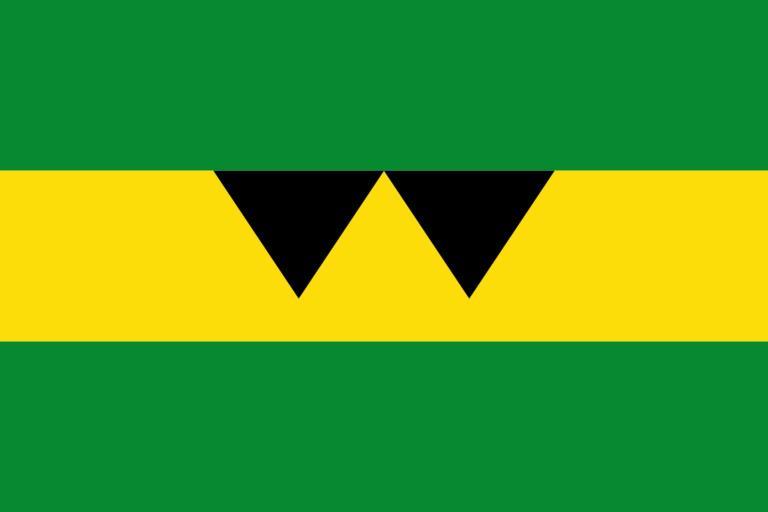 MAKE A MEME View Large Image Flag of Menàrguens.svg Bandera de Menàrguens Lleida Catalunya Espanya Bandera apaïsada de proporcions dos d'alt per tres d'ample tercejada horitzontal verda groga i verda la faixa central amb dues dents negres al perfil superior ...