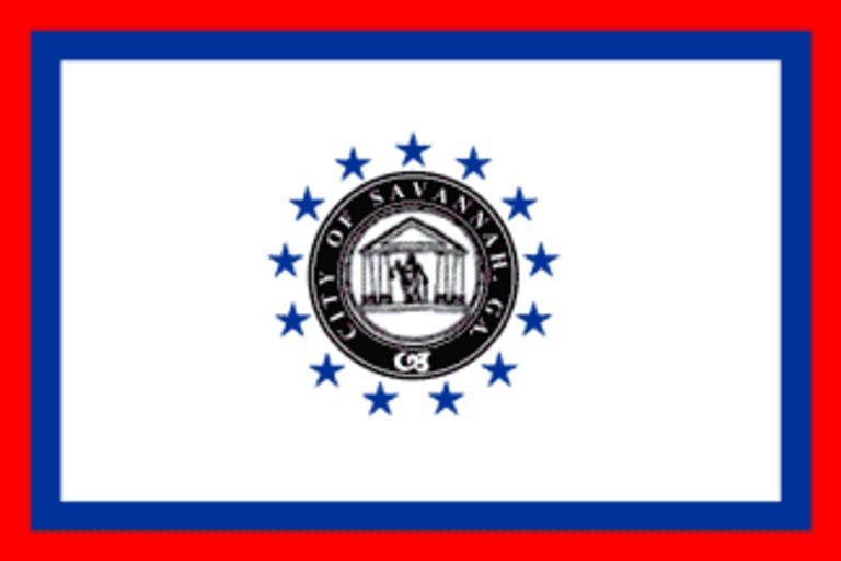 | Keywords: Flag of Savannah, Georgia.png  flag en Flag of Savannah Georgia adopted on January 18 1905 It consists of a white field displaying in the center the Savannah City Coat of Arms which was adopted in 1794 encircled by thirteen blue stars The outer border is red; the inner border is blue 1905-01-18 https //flagspot net/flags/us-ga-sv html https //www flagspot net/ Jens Pattke PNG PD-old PD-US 1905 works in the United States Savannah Georgia Uploaded with UploadWizard PNG flags of the United States Flags of Georgia U S state |