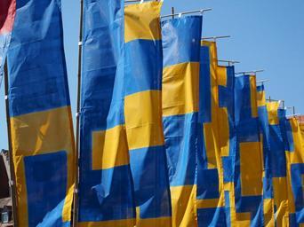 Keywords: flags blow flutter commemorative event ulm yellow blue