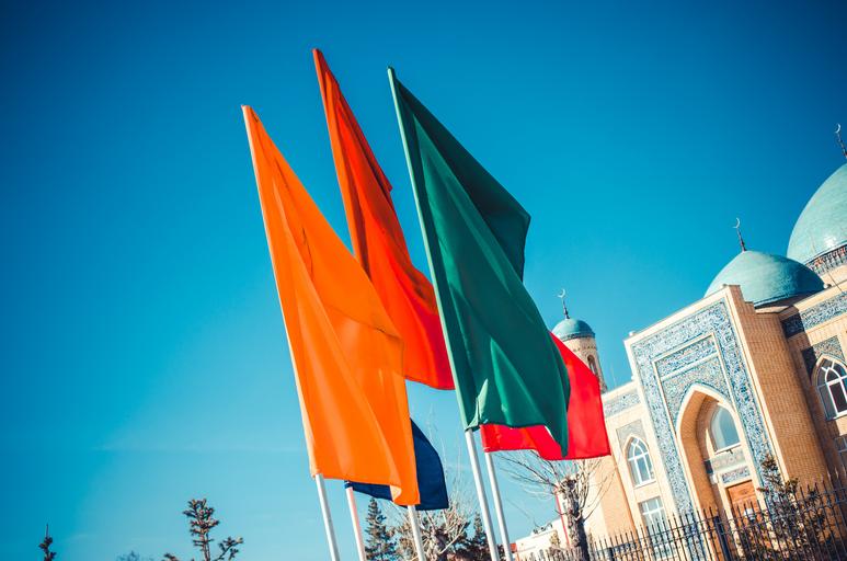 Keywords: flags multi-colored flags green flag red flag the blue flag the orange flag yellow flag city summer flowerbed nature