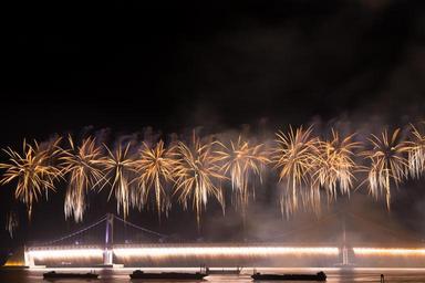 Keywords: flame festival night view the night sky sea bridge fireworks festival blaze night sky