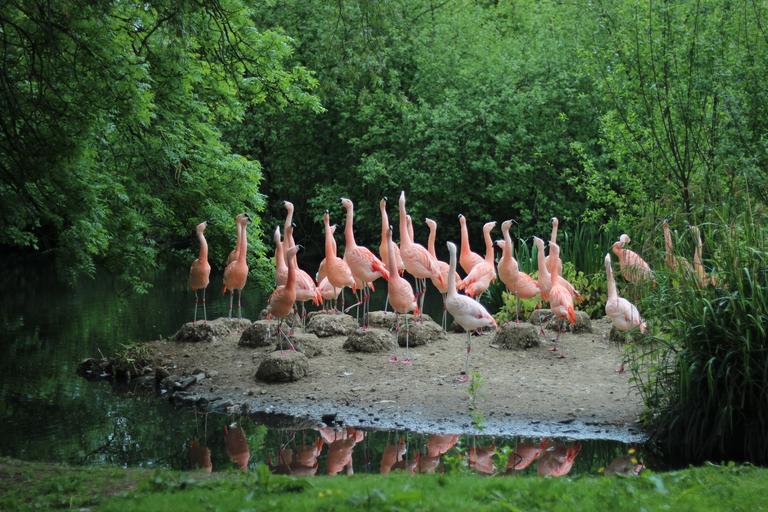 Keywords: flamingo bird pink parking zoo nature wild birds island water