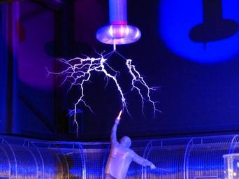 Keywords: flash tesla coil experiment high voltage experimental physics demonstration show museum museum of technology physics electricity tesla transformer artificial lightning human nikola tesla resonance transformer high frequency ac voltage discharge thunderstorm thunder
