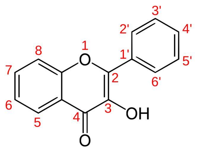 Keywords: Flavonol num.svg en structure of a flavanol de Grundstruktur eines Flavonols Own Yikrazuul 2009-01-16 Flavonols