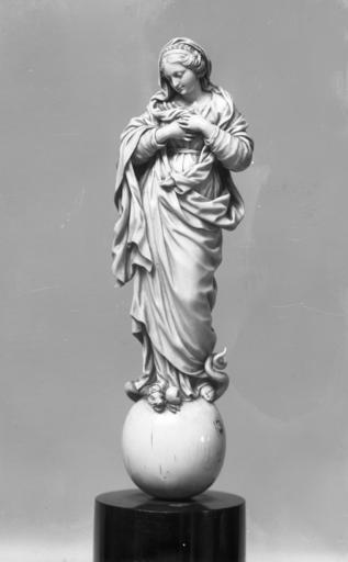 | Keywords: Flemish - Virgin of the Immaculate Conception - Walters 71402.jpg The Virgin as the Immaculata conceived in immaculate purity stands on the globe of the world originally supported by cherubs in triumph over sin Revelation 12 represented by the serpent that tempted Eve with a forbidden apple The archdukes were devoted to the Immaculata In celebration of Albert's military victories over Dutch forces and the truce of 1609 they built a chapel to her The subtly flowing voluminous drapery and sweetly sensitive face are characteristic of ivory carving in Liège in the independent Bishopric of Liège within the Southern Netherlands between 1680 1710 ivory cm 20 9 accession number 71 402 2795 Henry Walters Baltimore date and mode of acquisition unknown Walters Art Museum Henry Walters Acquired by Henry Walters Ivory The Sumptuous Art The Walters Art Gallery Baltimore 1983-1984 place of origin Liège Belgium Walters Art Museum license Baroque sculpture in the Walters Art Museum Flemish religious art in the Walters Art Museum Media contributed by the Walters Art Museum needs category review |