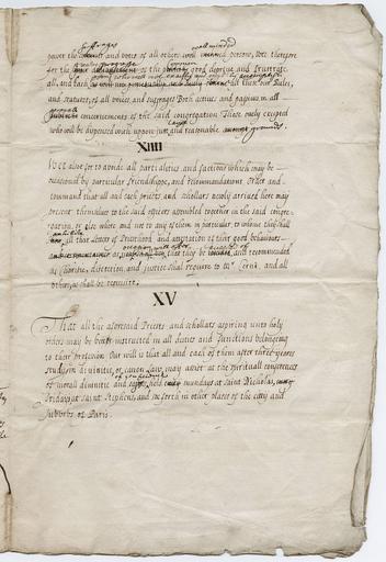 | Keywords: Flickr - Beinecke Flickr Laboratory - Rules and Constitution for the Continuation of Spiritual Exercises and Moral Conferences of All the Irish Priests and Schollars Dwelling Together or Separately in the City and Suburbs of Paris (5).jpg 12 p 35 5 x 23 5 cm Folder or box number Folder 16725 Genre/Form Manuscripts Cite as James Marshall and Marie-Louise Osborn Collection Beinecke Rare Book and Manuscript Library Yale University Repository http //www library yale edu/beinecke Beinecke Rare Book Manuscript Library Yale University Bibliographic Record Number 2033660 Call Number OSB MSS FILE View our Record http //beinecke library yale edu/dl_crosscollex/brbldl_getrec asp fld bib id 2033660 Permalink http //www flickr com/photos/25923731 N05/3118439881/ Rules and Constitution for the Continuation of Spiritual Exercises and Moral Conferences of All the Irish Priests and Schollars Dwelling Together or Separately in the City and Suburbs of Paris 2008-12-18 14 17 http //www flickr com/people/25923731 N05 Beinecke Flickr Laboratory PD-old Scanned English texts Humanistic handwriting Manuscripts in the United States Images from the Beinecke Rare Book and Manuscript Library |