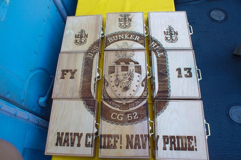 | Keywords: Flickr - Official U.S. Navy Imagery - Nine chief boxes aboard USS Bunker Hill..jpg SAN DIEGO Sept 14 2012 Nine chiefs were pinned during a chief petty officer pinning ceremony aboard the Ticonderoga-class guided-missile cruiser USS Bunker Hill CG-52 U S Navy photo by Operation Specialist 3rd Class Daylon Lindsay/Released 120914-N-EQ529-110 Join the conversation http //www facebook com/USNavy www facebook com/USNavy http //www twitter com/USNavy www twitter com/USNavy navylive dodlive mil http //www flickr com/photos/usnavy/7999571254/ Nine chief boxes aboard USS Bunker Hill 2012-09-14 21 48 http //www flickr com/people/56594044 N06 Official Navy Page from United States of America MC3 Daylon Lindsay/U S Navy U S Navy photo PD-USGov-Military-Navy Official U S Navy Imagery http //flickr com/photos/56594044 N06/7999571254 2012-11-12 08 59 20 cc-by-2 0 Images from United States Navy to check United States Navy images |