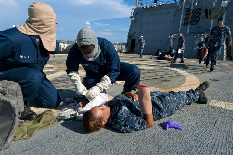 | Keywords: Flickr - Official U.S. Navy Imagery - Sailors attends to a simulated amputee victim..jpg OKINAWA Japan July 18 2012 Sailors attends to a simulated amputee victim during a mass casualty drill on the flight deck of the Arleigh Burke-class guided-missile destroyer USS McCampbell DDG 85 McCampbell is forward deployed to Yokosuka Japan and is underway in the U S 7th Fleet area of responsibility U S Navy photo by Mass Communication Specialist 2nd Class Matthew R Cole/Released 120718-N-ER662-115 Join the conversation http //www facebook com/USNavy www facebook com/USNavy http //www twitter com/USNavy www twitter com/USNavy http //navylive dodlive mil navylive dodlive mil http //www flickr com/photos/usnavy/7630268216/ Sailors attends to a simulated amputee victim 2012-07-23 11 19 http //www flickr com/people/56594044 N06 Official Navy Page from United States of America MC2 Matthew Cole/U S Navy Attribution License XMP-photoshop Source Navy Visual News Service PD-USGov-Military-Navy Official U S Navy Imagery http //flickr com/photos/56594044 N06/7630268216 2012-11-12 14 52 56 cc-by-2 0 Images from United States Navy to check |