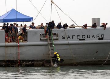 | Keywords: Flickr - Official U.S. Navy Imagery - A Royal Malaysian Navy divers bring up a U.S. Navy diver..jpg STRAIT OF MALACCA June 19 2012 Sailors assigned to Mobile Diving and Salvage Unit MDSU 1 and Royal Malaysian Navy divers bring up a U S Navy diver from the Military Sealift Command rescue and salvage ship USNS Safeguard T-ARS 50 during a wreck and salvage training event as part of Cooperation Afloat Readiness and Training CARAT Malaysia 2012 CARAT is a series of bilateral military exercises between the U S Navy and the armed forces of Bangladesh Brunei Cambodia Indonesia Malaysia the Philippines Singapore and Thailand Timor Leste joins CARAT for the first time in 2012 U S Navy photo by Mass Communication Specialist 1st Class N Ross Taylor/Released 120619-N-KB052-329 Join the conversation http //www facebook com/USNavy www facebook com/USNavy http //www twitter com/USNavy www twitter com/USNavy http //navylive dodlive mil navylive dodlive mil http //www flickr com/photos/usnavy/7408303840/ A Royal Malaysian Navy divers bring up a U S Navy diver 2012-06-20 11 14 http //www flickr com/people/56594044 N06 Official Navy Page from United States of America N Ross Taylor/U S Navy U S Navy photo PD-USGov-Military-Navy Official U S Navy Imagery http //flickr com/photos/56594044 N06/7408303840 2012-11-13 06 55 22 cc-by-2 0 Images from United States Navy to check Cooperation Afloat Readiness and Training 2012 |
