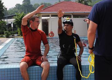 Keywords: Flickr - Official U.S. Navy Imagery - a surface rescue swimmer demonstrates proper rescue swimmer hand signals to a member of the Malaysia Maritime Enforcement Agency..jpg LUMUT Malaysia June 16 2012 U S Coast Guard Seaman Ian Butler left a surface rescue swimmer assigned to the Legend-class national security cutter USCGC Waesche WMSL 751 demonstrates proper rescue swimmer hand signals to a member of the Malaysia Maritime Enforcement Agency during a survival swimming and dive technique training event The event is part of Cooperation Afloat Readiness and Training CARAT Malaysia 2012 CARAT is a series of bilateral military exercises between the U S Navy and the armed forces of Bangladesh Brunei Cambodia Indonesia Malaysia the Philippines Singapore and Thailand Timor Leste joins CARAT for the first time in 2012 U S Navy photo by Mass Communication Specialist 1st Class N Ross Taylor/Released 120616-N-KB052-273 Join the conversation http //www facebook com/USNavy www facebook com/USNavy http //www twitter com/USNavy www twitter com/USNavy http //navylive dodlive mil navylive dodlive mil http //www flickr com/photos/usnavy/7407243806/ a surface rescue swimmer demonstrates proper rescue swimmer hand signals to a member of the Malaysia Maritime Enforcement Agency 2012-06-16 11 54 http //www flickr com/people/56594044 N06 Official Navy Page from United States of America N Ross Taylor/U S Navy U S Navy photo PD-USGov-Military-Navy Official U S Navy Imagery http //flickr com/photos/56594044 N06/7407243806 2012-11-13 07 03 45 cc-by-2 0 Images from United States Navy to check Cooperation Afloat Readiness and Training 2012 |