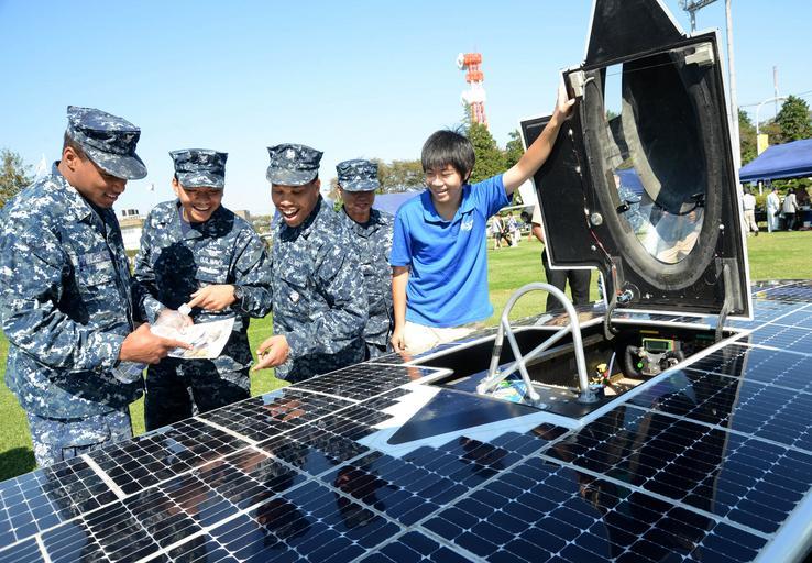 | Keywords: Flickr - Official U.S. Navy Imagery - Sailors examine a solar-powered car..jpg AYASE Japan Oct 26 2012 A student from Tokai University shows the university's solar powered car to Sailors during the Atsugi Energy and Water Efficiency Fair held at Taylor Field on Naval Air Facility Atsugi The fair promoted energy and water conservation methods and showcased the power of solar-hydrogen energy during Energy Awareness month The U S Navy has a 237-year heritage of defending freedom and projecting and protecting U S interests around the globe Join the conversation on social media using warfighting U S Navy photo by Mass Communication Specialist 3rd Class Vivian Blakely/Released 121026-N-TO330-143 Join the conversation http //www facebook com/USNavy www facebook com/USNavy http //www twitter com/USNavy www twitter com/USNavy http //navylive dodlive mil navylive dodlive mil http //www flickr com/photos/usnavy/8125357520/ Sailors examine a solar-powered car 2012-10-26 11 19 http //www flickr com/people/56594044 N06 Official Navy Page from United States of America MC3 Vivian Blakely/U S Navy U S Navy photo PD-USGov-Military-Navy Official U S Navy Imagery http //flickr com/photos/56594044 N06/8125357520 2012-11-12 00 59 19 cc-by-2 0 Images from United States Navy to check Tokai University racing cars |