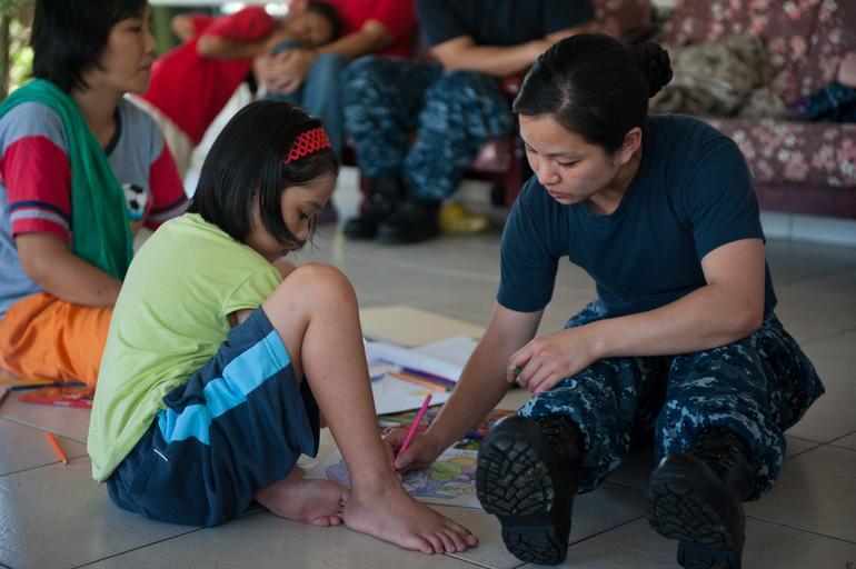 Keywords: Flickr - Official U.S. Navy Imagery - A Sailor draws in a coloring book with a girl at the Bukit Harapan Therapeutic Community children’s home in Kota Kinabalu..jpg KOTA KINABALU Malaysia May 19 2012 Fire Controlman 3rd Class Thao Miller draws in a coloring book with a girl at the Bukit Harapan Therapeutic Community children ™s home in Kota Kinabalu For the community service project Sailors and Marines deployed with the amphibious assault ship USS Makin Island LHD 8 volunteered their labor and spent time with children at the home Makin Island and embarked Marines assigned to the 11th Marine Expeditionary Unit are deployed in the U S 7th Fleet area of operations U S Navy photo by Mass Communication Specialist 2nd Class Alan Gragg/Released 120519-N-DX615-076 Join the conversation http //www facebook com/USNavy www facebook com/USNavy http //www twitter com/USNavy www twitter com/USNavy http //navylive dodlive mil navylive dodlive mil http //www flickr com/photos/usnavy/7248797814/ A Sailor draws in a coloring book with a girl at the Bukit Harapan Therapeutic Community children ™s home in Kota Kinabalu 2012-05-19 05 54 http //www flickr com/people/56594044 N06 Official Navy Page from United States of America MC2 Alan Gragg/U S Navy U S Navy photo PD-USGov-Military-Navy Official U S Navy Imagery http //flickr com/photos/56594044 N06/7248797814 2012-11-13 13 53 10 cc-by-2 0 Images from United States Navy to check United States Navy images |