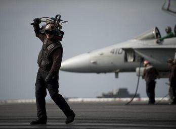 Keywords: Flickr - Official U.S. Navy Imagery - A Sailor carries a hydraulic servicing unit on the flight deck..jpg ARABIAN SEA Jan 14 2012 A plane captain carries a hydraulic servicing unit on the flight deck aboard the Nimitz-class aircraft carrier USS Carl Vinson CVN 70 Carl Vinson and Carrier Air Wing CVW 17 are underway on a western Pacific deployment U S Navy photo by Mass Communication Specialist 2nd Class James R Evans/Released 120114-N-DR144-136 http //www flickr com/photos/usnavy/6731629803/ A Sailor carries a hydraulic servicing unit on the flight deck 2012-01-14 06 24 http //www flickr com/people/56594044 N06 Official Navy Page from United States of America MC2 James R Evans/U S Navy U S Navy photo PD-USGov-Military-Navy Official U S Navy Imagery http //flickr com/photos/56594044 N06/6731629803 2012-11-14 06 51 17 cc-by-2 0 F/A-18 Hornet on flight decks USS Carl Vinson CVN-70 flight deck |