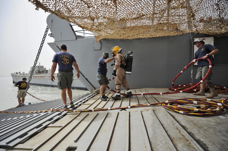 | Keywords: Flickr - Official U.S. Navy Imagery - A Sailor guides a U.S. Army diver down a bow ramp aboard an Army vessel.jpg UMM QASR Iraq June 11 2011 A Sailor assigned to Commander Task Group CTG 56 1 guides a U S Army diver assigned to the 7th Engineer Dive Team down a bow ramp aboard the U S Army vessel Landing Craft Utility Five Forks LCU 2018 CTG 56 1 Army divers and Iraqi divers are conducting dive operations to raise and remove a sunken pier at the port of Umm Qasr CTG 56 1 supports maritime security operations and theater security cooperation efforts in the U S 5th Fleet area of responsibility U S Navy photo by Mass Communication Specialist 1st Class Peter D Lawlor/Released 110611-N-WL435-079 http //www flickr com/photos/usnavy/5878096698/ A Sailor guides a U S Army diver down a bow ramp aboard an Army vessel 2011-06-11 00 40 http //www flickr com/people/56594044 N06 Official Navy Page from United States of America MC1 SW Peter D Lawlor/U S Navy Attribution License IPTC Source Navy Visual News Service PD-USGov-Military-Navy Official U S Navy Imagery http //flickr com/photos/56594044 N06/5878096698 2012-11-15 01 32 41 cc-by-2 0 Images from United States Navy to check |