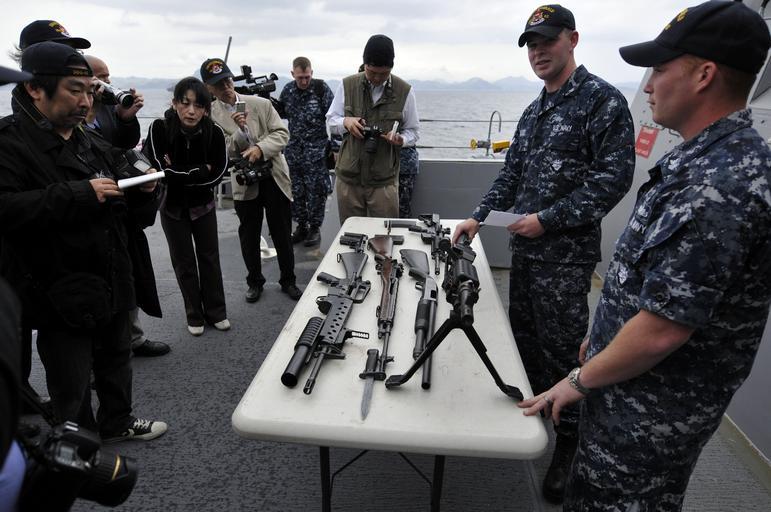 Keywords: Flickr - Official U.S. Navy Imagery - Sailors show members of the Japanese media the small arms weapons used aboard USS Fitzgerald.jpg YOKOSUKA Japan May 17 2011 Gunner ™s Mate 1st Class Michael Hoar right and Gunner ™s Mate 3rd Class Kaleb Casey Williams show members of the Japanese media the small arms weapons used aboard the guided-missile destroyer USS Fitzgerald DDG 62 during a daylight embark Members of the media and local city and government officials are touring the ship observing demonstrations of man overboard and crash and salvage drills U S Navy photo by Mass Communication Specialist 1st Class Jennifer A Villalovos/Released 110517-N-WW409-196 http //www flickr com/photos/usnavy/5764933694/ Sailors show members of the Japanese media the small arms weapons used aboard USS Fitzgerald 2011-05-17 12 24 http //www flickr com/people/56594044 N06 Official Navy Page from United States of America MC1 Jennifer A Villalovos/U S Navy Attribution License XMP-photoshop Source Navy Visual News Service PD-USGov-Military-Navy Official U S Navy Imagery http //flickr com/photos/56594044 N06/5764933694 2012-11-15 09 50 10 cc-by-2 0 Images from United States Navy to check |